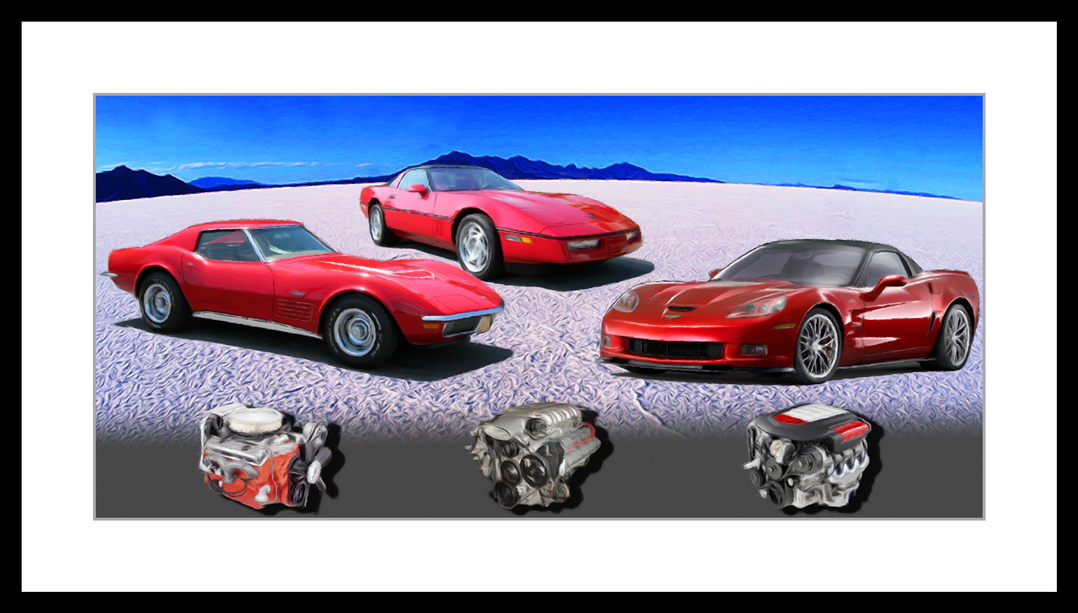 Detail of '53 & '03 Corvettes Painting Each of Rod’s print editions starts as an original painting, painted with pastel chalks and pencils on pastel paper. The original painting is then scanned, full scale, on a high resolution flatbed scanner in order to preserve the color and detail. The scan is then digitally resized to the print size and each print is output on an Epson 4000 Print Engine. Each print is then hand signed and numbered by Rod. These are fine art prints of original pastel paintings. The prints are printed on museum grade archival pastel paper with pigmented inks and will resist fading for many generations. The size is listed for each print and they are numbered, signed and come with a certificate of authenticity. Each print is a limited edition and once an edition is sold out, they are gone as there will be no more editions. Price for each print is $29.95 or $34.95 unframed. Shipping and handling is a flat fee of $4.95 anywhere in the US. Please e-mail for shipping costs outside the US. We can provide the prints framed, please contact us via e-mail, rod@dd-designgroup.com , if you are interested. To receive a full color catalog of all of Rod's current automotive fine art prints click here and fill out and submit the online form. We have decided to sell a handful of Rod's original pastel paintings. They are pastel chalks on either Arches or Strathmore pastel paper. Original paintings will be signed by the artist and shipped framed along with a letter of authenticity. The original pastel paintings that we are offering are listed below along with the print information. If you are interested in one of these original pastel paintings, please contact us to work out the details. Click on the prints for a larger view. Fine Automotive Art Posters by Rodney Mann Posters are printed on heavy archival matte stock with pigmented inks and will resist fading for many years. All posters are approximately 19"x17" in size. Price for each is $19.95 . Shipping and handling is a flat fee of $4.95 anywhere in the US. Please e-mail for shipping costs outside the US. We can provide the posters framed, please contact us via e-mail, rod@dd-designgroup.com , if you are interested in that. Click on the posters for a larger view.