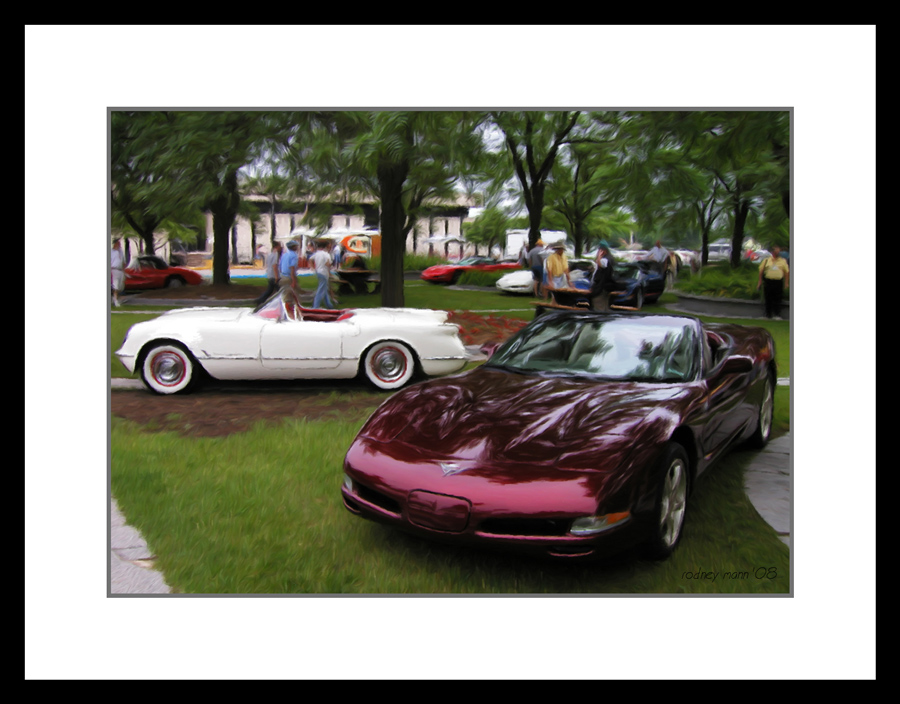 Detail of '53 & '03 Corvettes Painting Each of Rod’s print editions starts as an original painting, painted with pastel chalks and pencils on pastel paper. The original painting is then scanned, full scale, on a high resolution flatbed scanner in order to preserve the color and detail. The scan is then digitally resized to the print size and each print is output on an Epson 4000 Print Engine. Each print is then hand signed and numbered by Rod. These are fine art prints of original pastel paintings. The prints are printed on museum grade archival pastel paper with pigmented inks and will resist fading for many generations. The size is listed for each print and they are numbered, signed and come with a certificate of authenticity. Each print is a limited edition and once an edition is sold out, they are gone as there will be no more editions. Price for each print is $29.95 or $34.95 unframed. Shipping and handling is a flat fee of $4.95 anywhere in the US. Please e-mail for shipping costs outside the US. We can provide the prints framed, please contact us via e-mail, rod@dd-designgroup.com , if you are interested. To receive a full color catalog of all of Rod's current automotive fine art prints click here and fill out and submit the online form. We have decided to sell a handful of Rod's original pastel paintings. They are pastel chalks on either Arches or Strathmore pastel paper. Original paintings will be signed by the artist and shipped framed along with a letter of authenticity. The original pastel paintings that we are offering are listed below along with the print information. If you are interested in one of these original pastel paintings, please contact us to work out the details. Click on the prints for a larger view. Fine Automotive Art Posters by Rodney Mann Posters are printed on heavy archival matte stock with pigmented inks and will resist fading for many years. All posters are approximately 19"x17" in size. Price for each is $19.95 . Shipping and handling is a flat fee of $4.95 anywhere in the US. Please e-mail for shipping costs outside the US. We can provide the posters framed, please contact us via e-mail, rod@dd-designgroup.com , if you are interested in that. Click on the posters for a larger view.